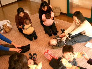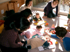 毎週1回、保育園でお母さんと共に過ごすワッハランドです