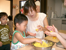 ママと一緒に 混ぜ混ぜ混ぜ・・・ 何だかいい匂い! |
